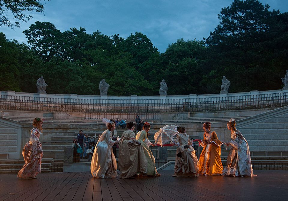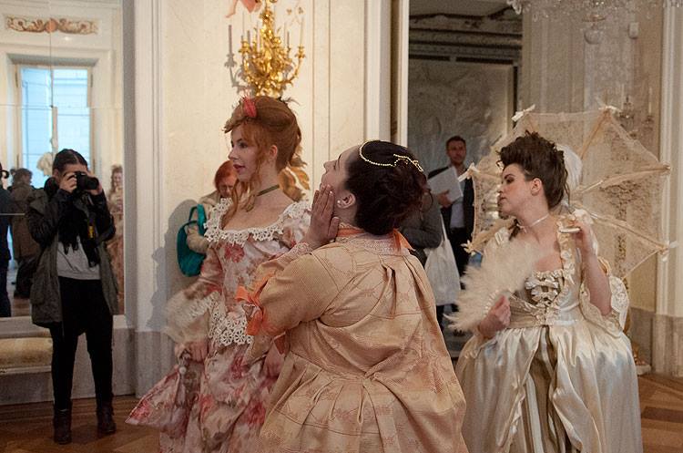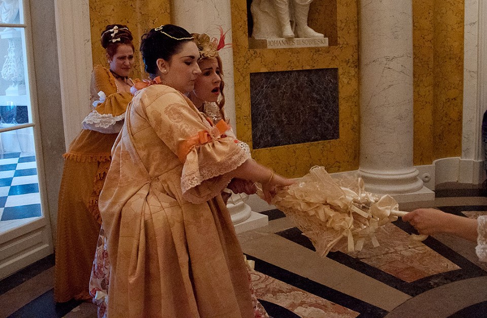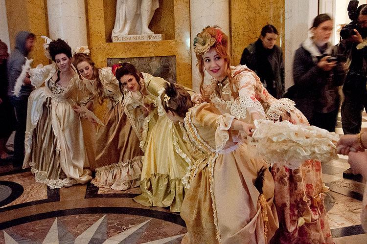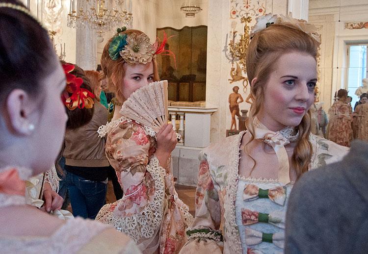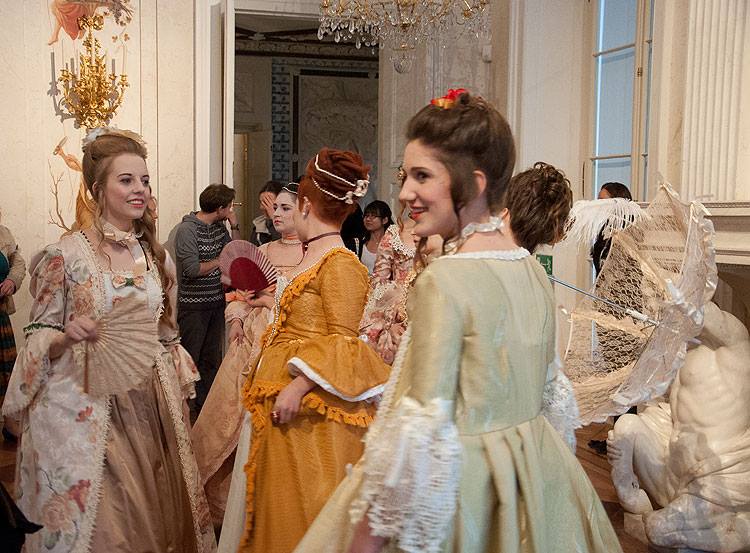 Podczas tegorocznej Nocy Muzeów Wyższa Szkoła Artystyczna zaprezentowała w Łazienkach Królewskich najpiękniejsze stroje rokokowe wykonane przez studentów I roku. Ucharakteryzowane postacie przechadzały się po Amfiteatrze odgrywając scenki, zabawiając publiczność oraz pozując do zdjęć. Przybyli Goście mieli niepowtarzalną okazję odbyć podróż w czasie. Pałacowe wnętrza ożyły na nowo, a czar minionej epoki powrócił i zachwycił!